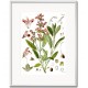 Obraz Vintage przedstawia zielone rośliny z różowymi kwiatami rozproszone po białym tle.