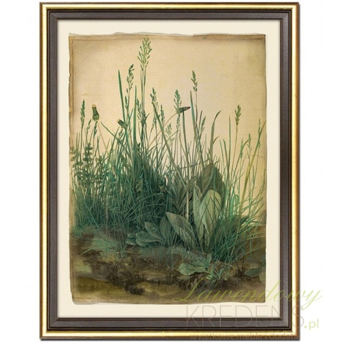 Prezentujemy obraz vintage z bogato rozwiniętym roślinami trawiastymi zapełniającymi prawie całe tło obrazu. Atrakcyjny obraz wykonano na płótnie i oprawiono w klasyczną ramę z pozłacaną krawędzią. Obrazy vintage mogą zdobić wnętrza urządzone na wzór antyczny ale również nowoczesne aranżacje. Ożyw swoje wnętrze naturalnymi wzorcami!