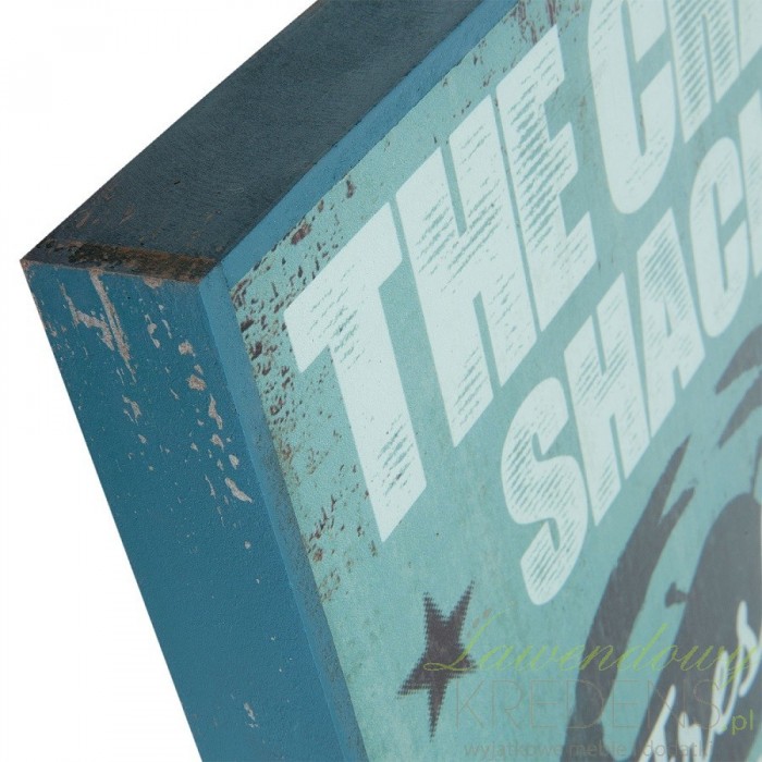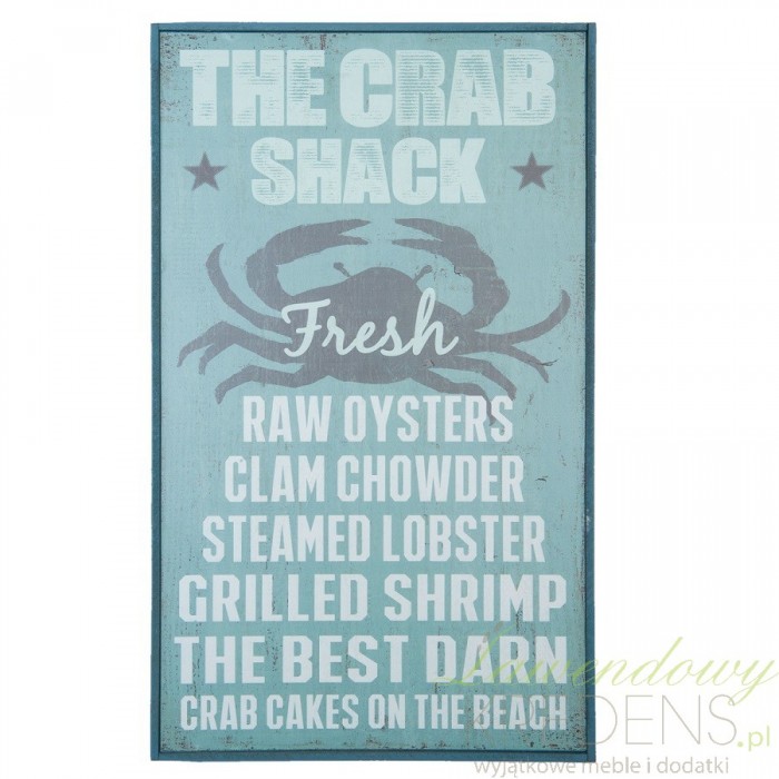 Obrazek marynistyczny w morskim kolorze wykonany został z drewna. Ten obrazek z krabem posiada także angielskie napisy, które są jego dodatkową dekoracją. Dodatki w stylu marynistycznym to powrót do wspomnień o ciepłym, letnim wypoczynku nad morzem.