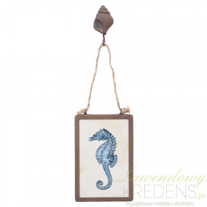 Zawieszka marynistyczna to metalowa muszla z haczykiem, na którym zawieszono obraz z konikiem morskim. Dekoracja nosi ślady celowych postarzeń, które są bardzo mile widziane we wnętrzach marynistycznych. Marka Clayre&Eef stworzyła dodatki w stylu marynistycznym z nutką retro, będące gotowymi pomysłami do ozdoby wnętrza. Wybierz swoje ulubione i zamów już teraz!