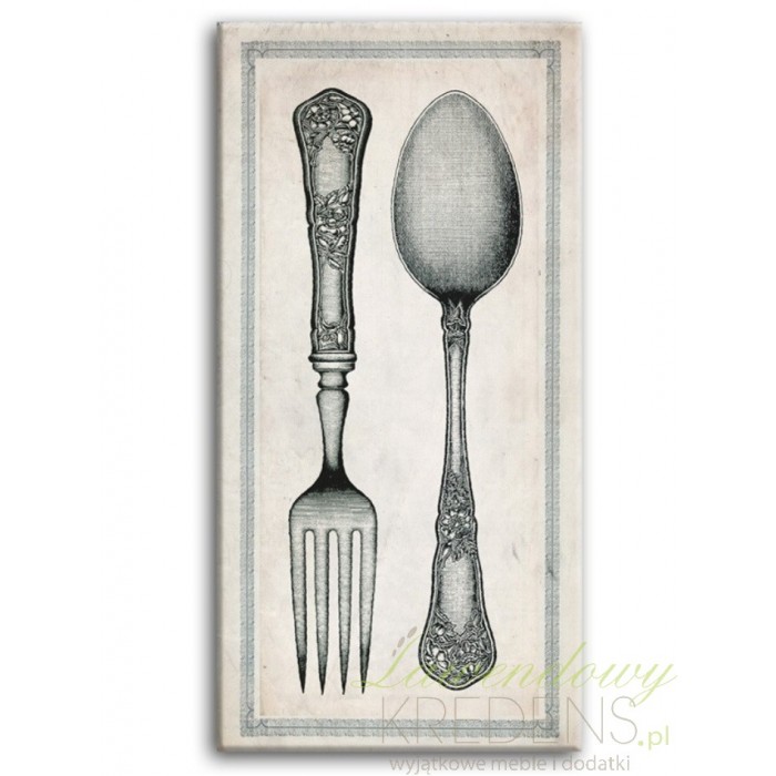 Podłużny obraz ze sztućcamii to obraz w stylu prowansalskim, idealny na ścianę w kuchni lub w stylowym lokalu gastronomicznym.