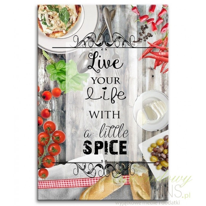 Wysoki obraz do kuchni prezentuje się nader dizajnersko i przedstawia śródziemnomorskie, dojrzałe owoce i przyprawy.