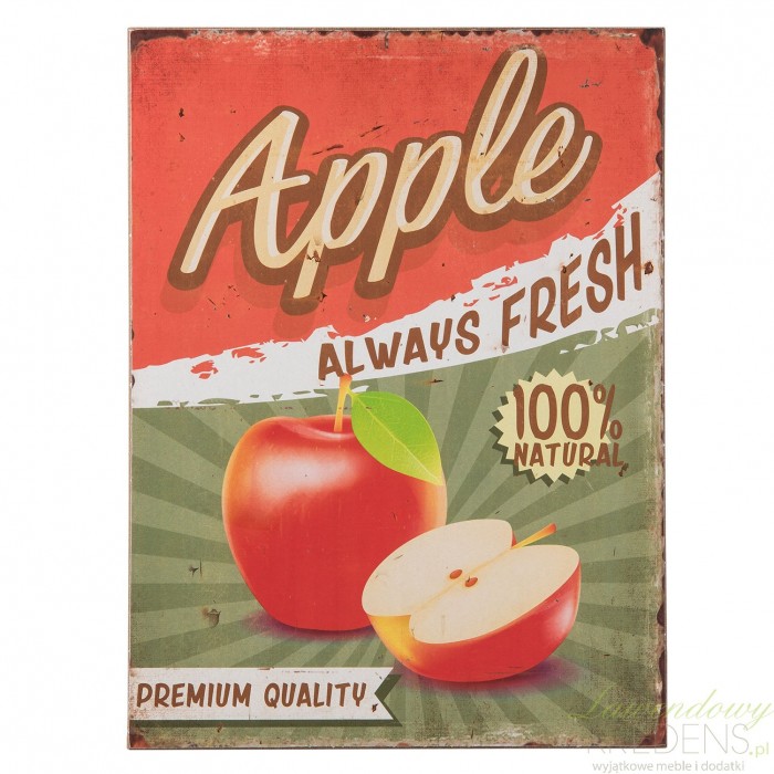 Obrazek retro z jabłkiem prezentuje stary styl, za co odpowiadają miejscowe, celowe postarzenia w formie odprysków.