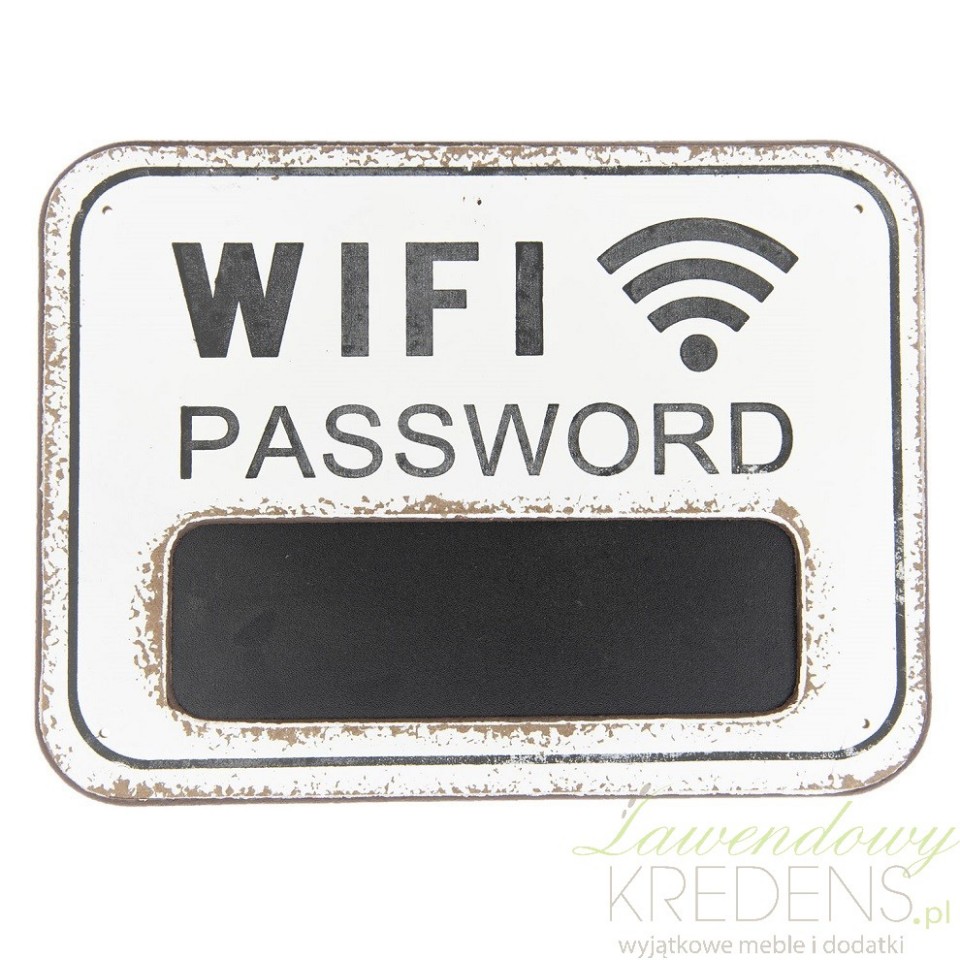 Metalowy obrazek w stylu retro z napisem WIFI i tablicą do pisania kredą jest genialnym dodatkiem do każdego lokalu, w którym goście mogą skorzystać z miejscowego Internetu.
