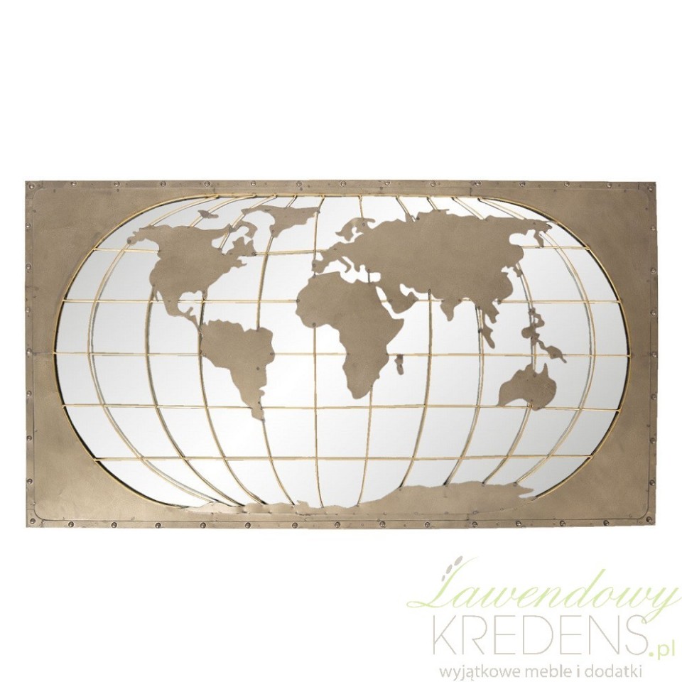 Niepodrabialny projekt lustra dekoracyjnego holenderskiego producenta wyróżnia się niezwykle oryginalną stylistyką inspirowaną stylem industrialnym i kształtem kuli ziemskiej. Całość wyjątkowej kompozycji dopełnia chłodna kolorystyka ponadczasowej szarości z miedzianą nutą. Prostokątne lustro z mapą zdobione ażurową nakładką będzie niezwykłym dopełnieniem aranżacyjnym Twojego salonu. Świetnie sprawdzi się również jako dodatek do sypialni i eleganckiego gabinetu i innych zakątków w Twoim domu.