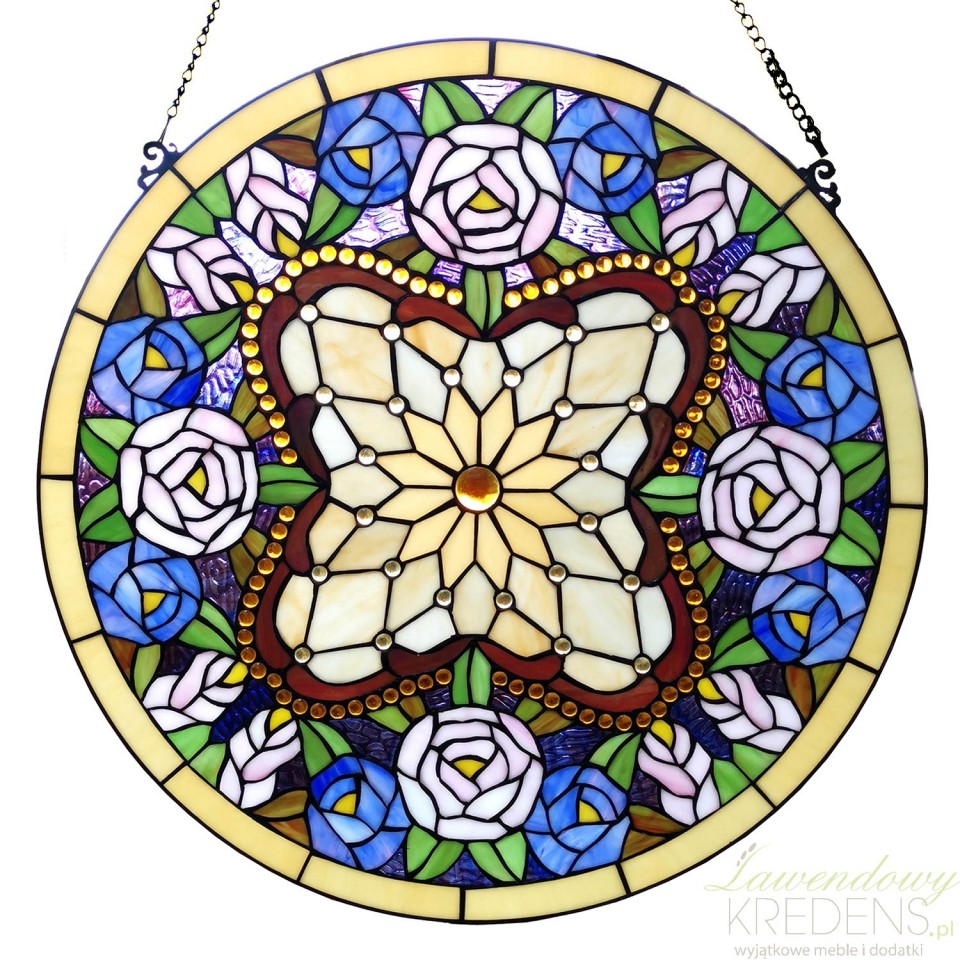 Wypędź nudę ze swoich czterech kątów i zamów szklany panel ścienny Tiffany o średnicy 60 centymetrów z kwiatowym wzorem!