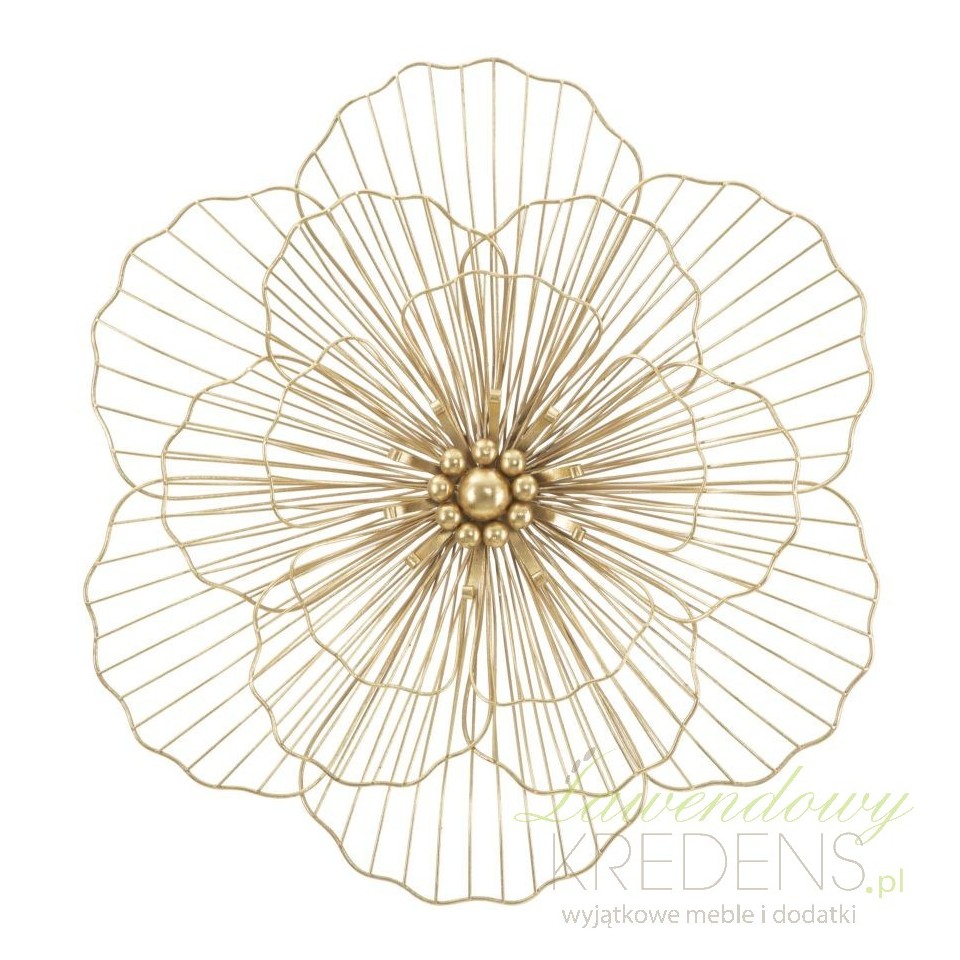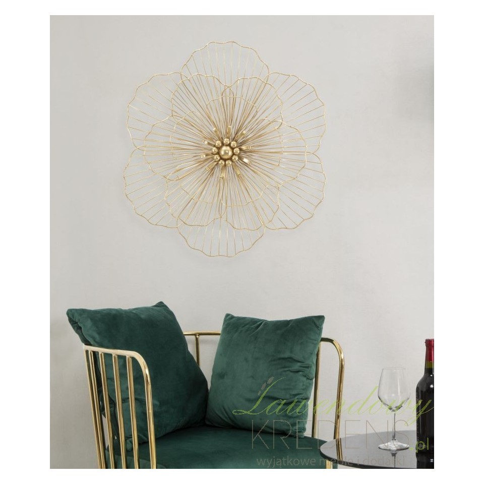 Złota dekoracja ścienna metalowy kwiat Mauro Ferretti dobrze komponuje się z eleganckimi elementami dekoracyjnymi.