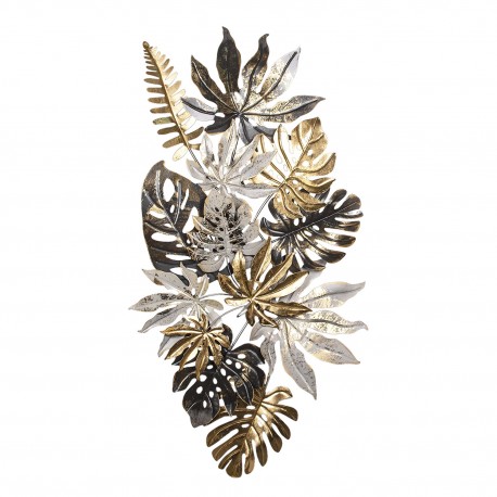 Metalowa dekoracja ścienna liście palmy i paproci jest wykonana w różnokolorowych odcieniach czerni, srebra, złota i szarości. Powstała aby stworzyć skomplikowany, wizualny akcent na każdej ścianie. Metalowe dekoracje ścienne zainspirowane naturą to pomysł marki Clayre & Eef na to, jak w prosty sposób dodać charakteru i wdzięku współczesnym aranżacjom. Ta ozdoba ścienna doskonale komponuje się z wnętrzami w stylu glamour, prowansalskimi i vintage! Zamów już dzisiaj z opcją darmowej dostawy na terenie całej Polski!