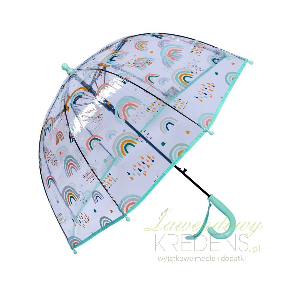 Ten uroczy parasol jest nie tylko funkcjonalny, ale również pięknie ozdobiony, aby dostarczyć Twojemu dziecku mnóstwo kolorowej przyjemności w każdym deszczowym dniu. Zaczarowany turkusową lamówką, ten parasol dodaje nutki bajecznej elegancji do każdego kroku Twojego dziecka. Dzięki przezroczystej powierzchni, maluchy mogą cieszyć się widokiem rozbłyskujących kropel deszczu, które wpadają w zaklęte tęcze i rozchodzą się w różnorodnych barwach. To jak mały wodny spektakl, który rozświetli ich nastroje!