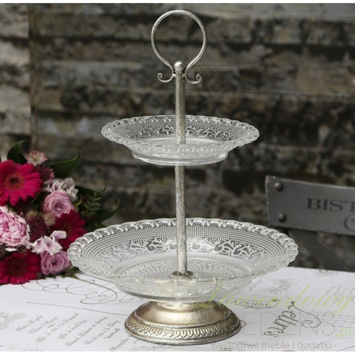 Etażerka metalowa ze szklanymi tacami to wspaniały dodatek stołowy od Chic Antique specjalnie dla Ciebie!