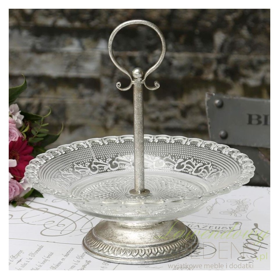 Przepiękna, szklana etażerka prowansalska firmy Chic Antique z dużym metalowym uchwytem!