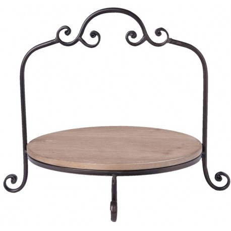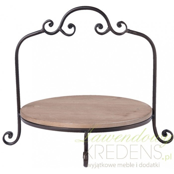 Oryginalna patera na ciasto została wykonana z metalu i drewna w naturalnym, brązowym kolorze. Fantastyczne wygięcia dodają jej prowansalskiego uroku.