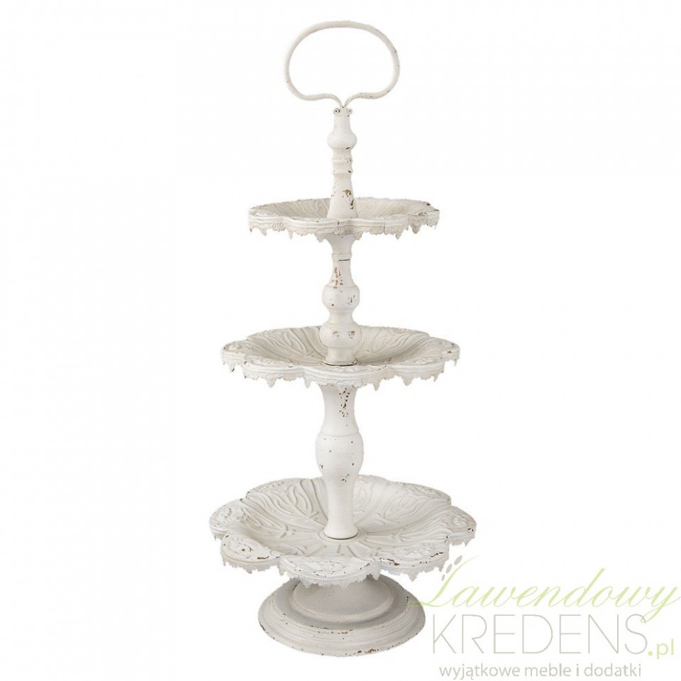 Ozdobna patera w stylu prowansalskim wzmocni efekt aranżacji w starym stylu. Wykonana w całości z metalu składa się z trzech pięter dekoracyjnych talerzy z rzeźbieniami. Odpowiednia zarówno na wystawne bankiety jak i rodzinne uroczystości jak ślub czy chrzest. Marka Clayre&Eef dodała jej charakteru za pomocą wielu, celowych postarzeń.