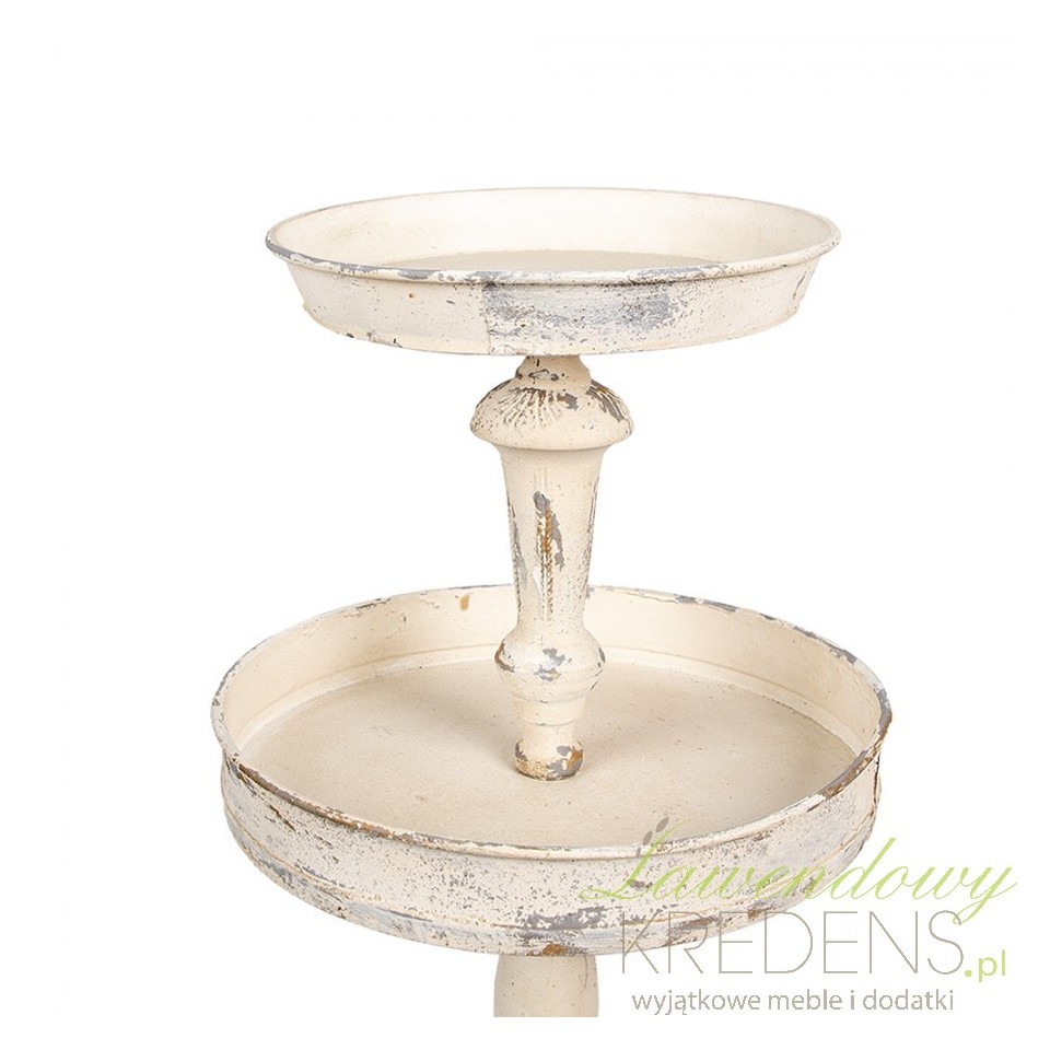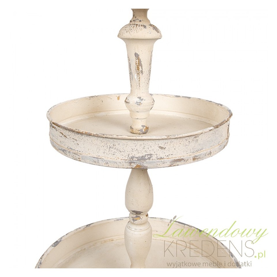 Kremowa etażerka wykonana z metalu posiadająca aż trzy okrągłe półeczki na babeczki czy ciasteczka. Piękne, praktyczne i uniwersalne dekoracje w stylu prowansalskim Clayre & Eef, ozdobią każde wnętrze.