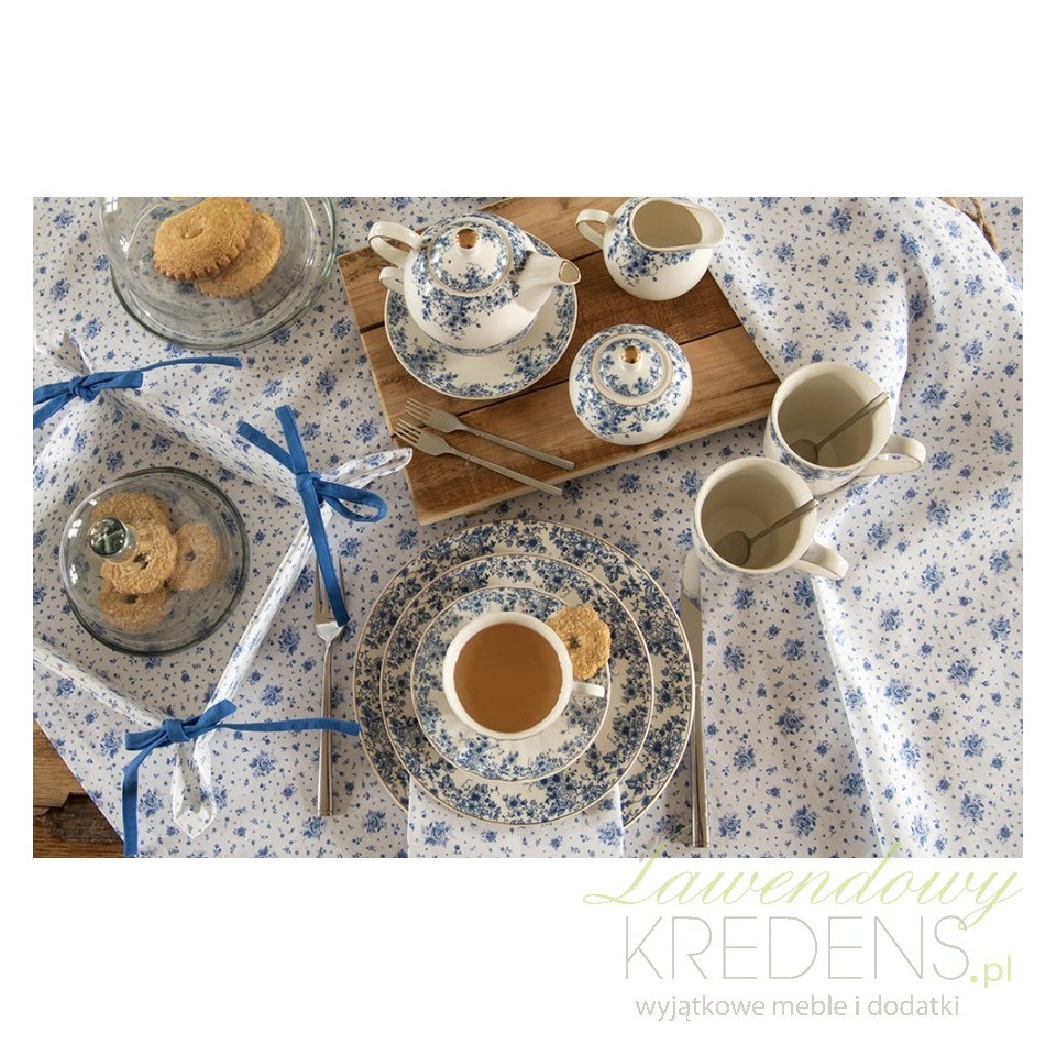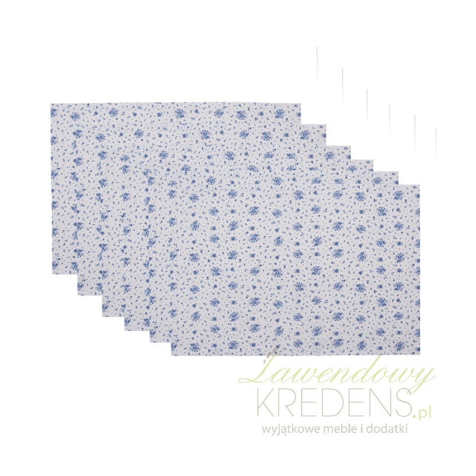 Rozkoszuj się elegancją i urokiem naszym kompletem sześciu bawełnianych, prostokątnych podkładek stołowych w niebieskie różyczki, stworzonym przez renomowaną firmę Clayre & Eef.