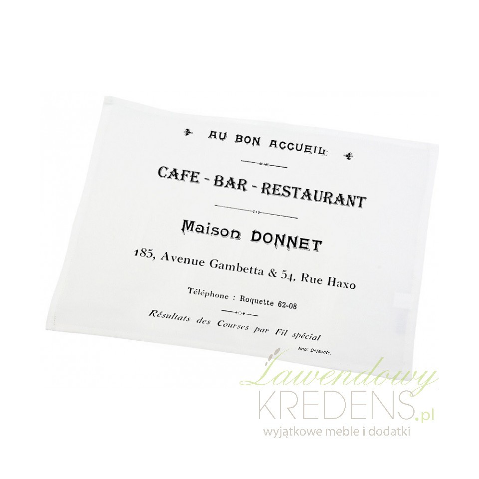 Białe serwety na stół w stylu prowansalskim z francuskimi napisami. Dzięki stylowym napisom serwety wyglądają bardzo ciekawie i będą świetną dekoracją każdego stołu. Do serwet polecamy także bieżniki na stół oraz poduszki dekoracyjne marki French Home.