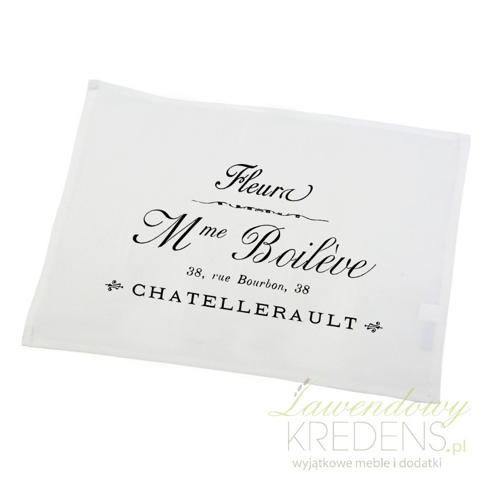 Serwety French Home to gustowne, prostokątne serwety na stół z napisami o czarnym kolorze czcionki.