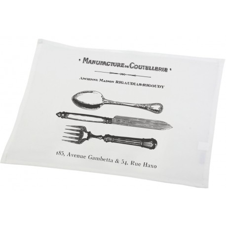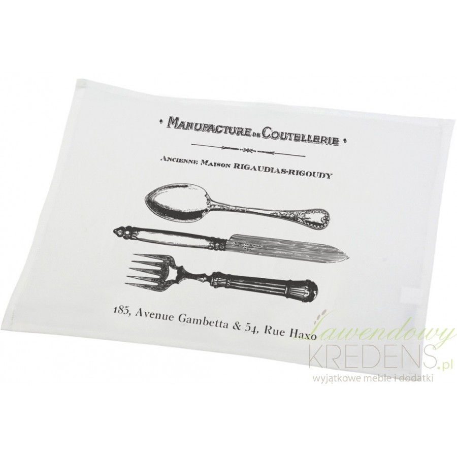Bawełniane, prostokątne serwety na stół oferowane przez firmę French Home z motywem sztućców w centralnej części!