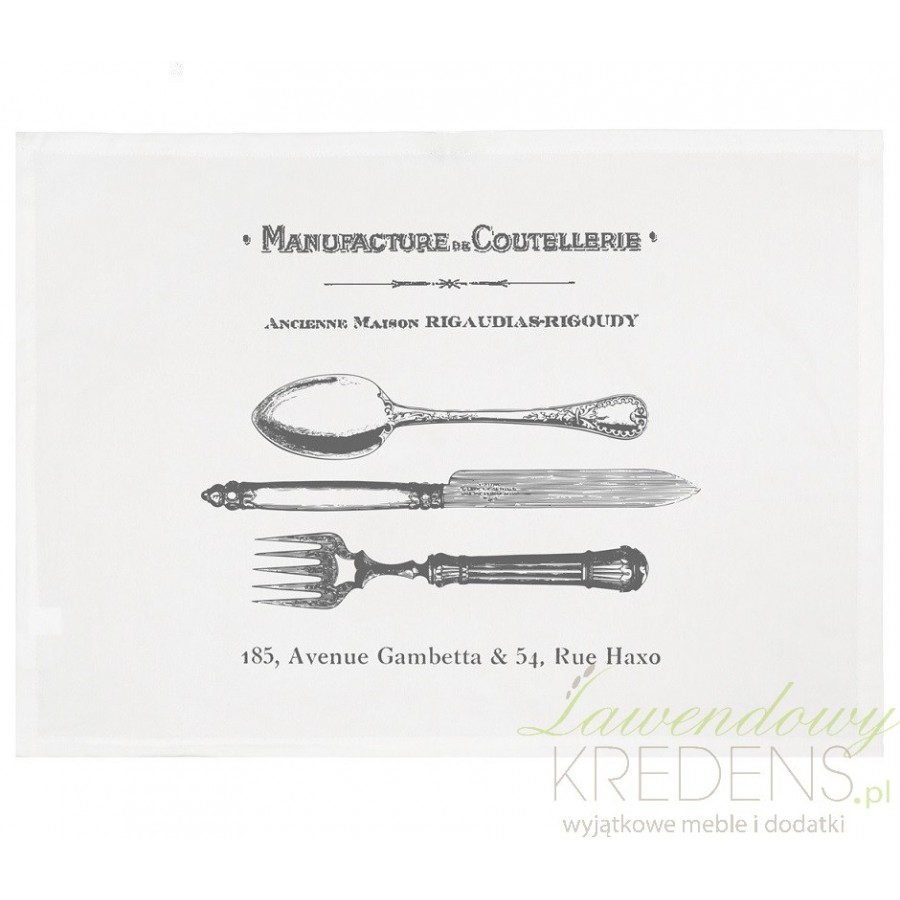 W 100% bawełniane serwety z francuskim nadrukiem przedstawiającym komplet sztućców, czyli łyżkę, nóż i widelec na tle napisów. Nadrukowana grafika prezentuje się okazale, jednocześnie nienarzucając się swoją obecnością, co daje przyjemny dla oka efekt. Praktyczne serwety to dodatki do kuchni i jadalni, których niegdy za wiele!
