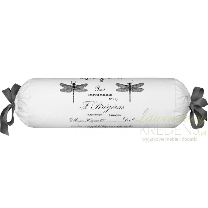 Śliczne poduszki ozdobne firmy French Home będą wspaniałym dodatkiem do każdego mieszkania. Poduszka wałek w stylu prowansalskim w kolorze białym z czarnymi francuskimi napisami oraz dwoma ważkami znajdującymi się po bokach napisu Paris, nada oryginalność i niepowtarzalność salonowi. Francuskie poduszki wałki z szarymi wstążkami po bokach nadadzą charakter i urok twojemu mieszkaniu. Będą pięknie wyglądać w sypialni, czy też jako ozdoba pokoju dziennego lub kuchni.