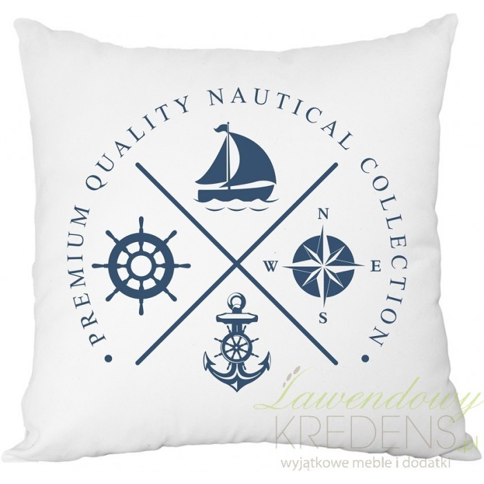 Biała poduszka marynistyczna z granatowym wzorem, specjalnie dla Ciebie od marki French Home!