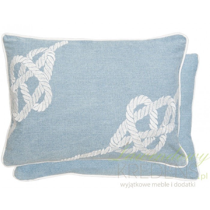 Błękitna, prostokątna poduszka marynistyczna firmy Clayre & Eef z linami!