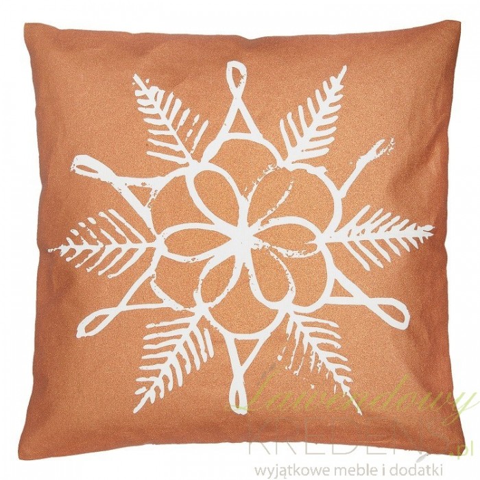 Kwadratowa poszewka ozdobna w kolorze miedzianym z białym wzorem. Poszewka, która ozdobi Twoje łóżko!