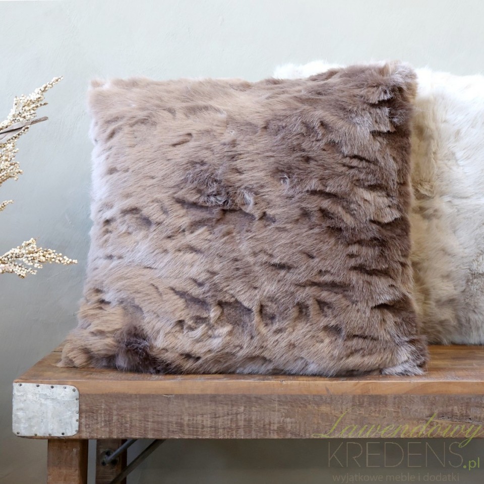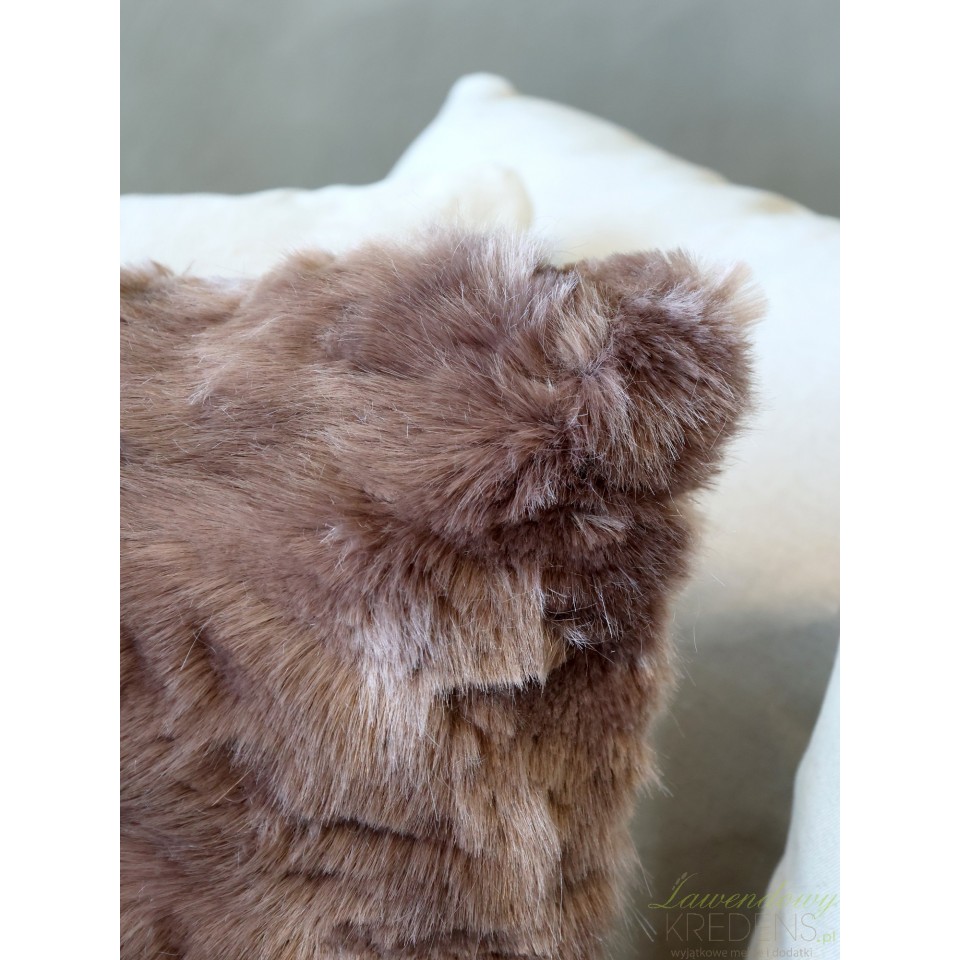 Brązowa poduszka posiada urocze i gęste wypełnienie z włókien poliestrowych. Z jednej strony ma wyjątkowo miękkie sztuczne futerko, a z drugiej przyjemną aksamitną powierzchnię. Poszewkę na poduszkę można zdjąć, aby ułatwić czyszczenie. Po drugiej stronie poszewki znajduje się miła, welurowa powierzchnia, a od przodu miękkie futerko.