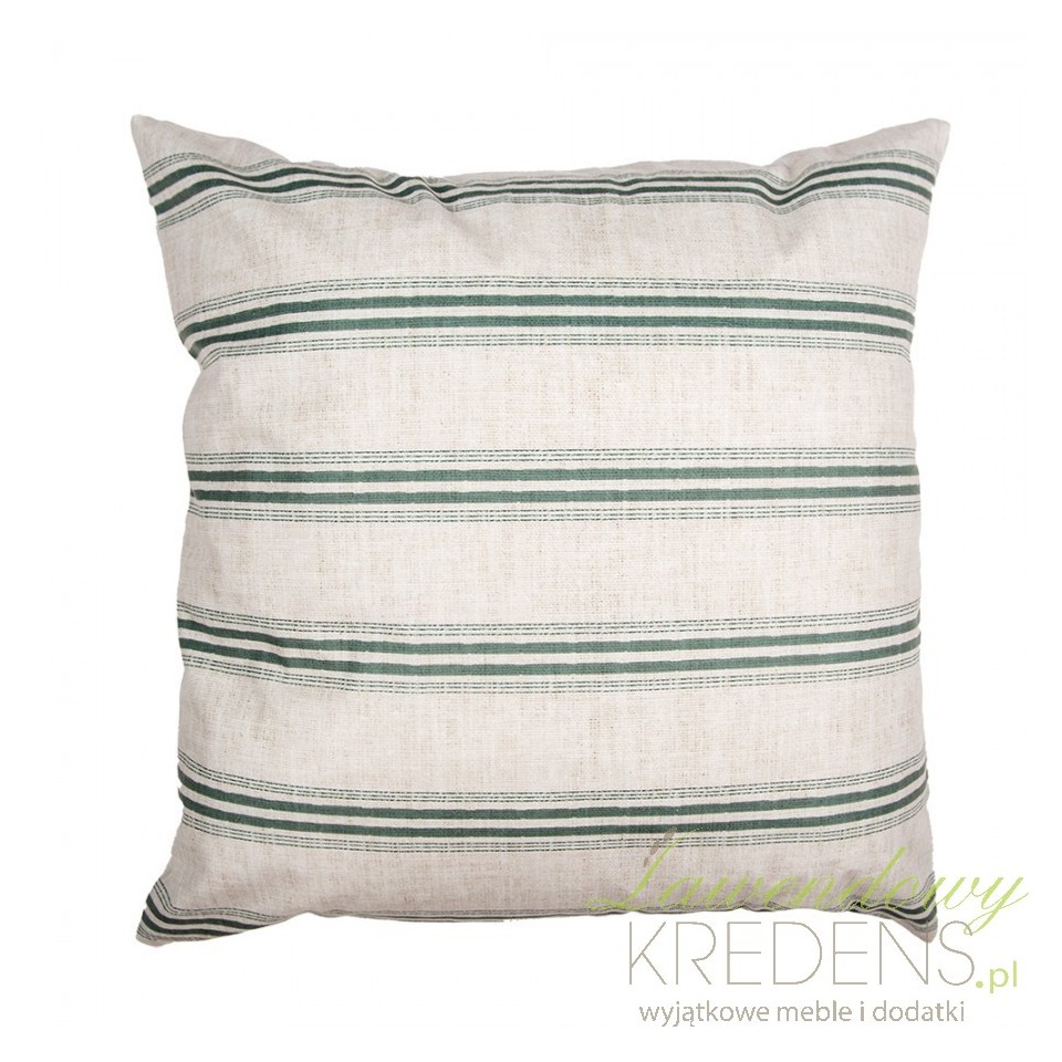 Kwadratowa poszewka na poduszkę dekoracyjną wyróżnia się eleganckim i naturalnym wzornictwem. Z jednej strony znajduje się motyw zielonej dyni otoczonej subtelnymi, białymi kwiatami, które nadają jej delikatności i harmonii. Kolory są stonowane, a kompozycja ma sielski, rustykalny charakter, idealny do wnętrz inspirowanych naturą. Druga strona poszewki to prosty, ale stylowy wzór w zielone pasy. Ten motyw wprowadza klasyczną, ponadczasową estetykę, która dobrze współgra z resztą designu. Obie strony poszewki doskonale się uzupełniają, tworząc harmonijną całość.
