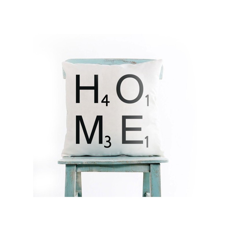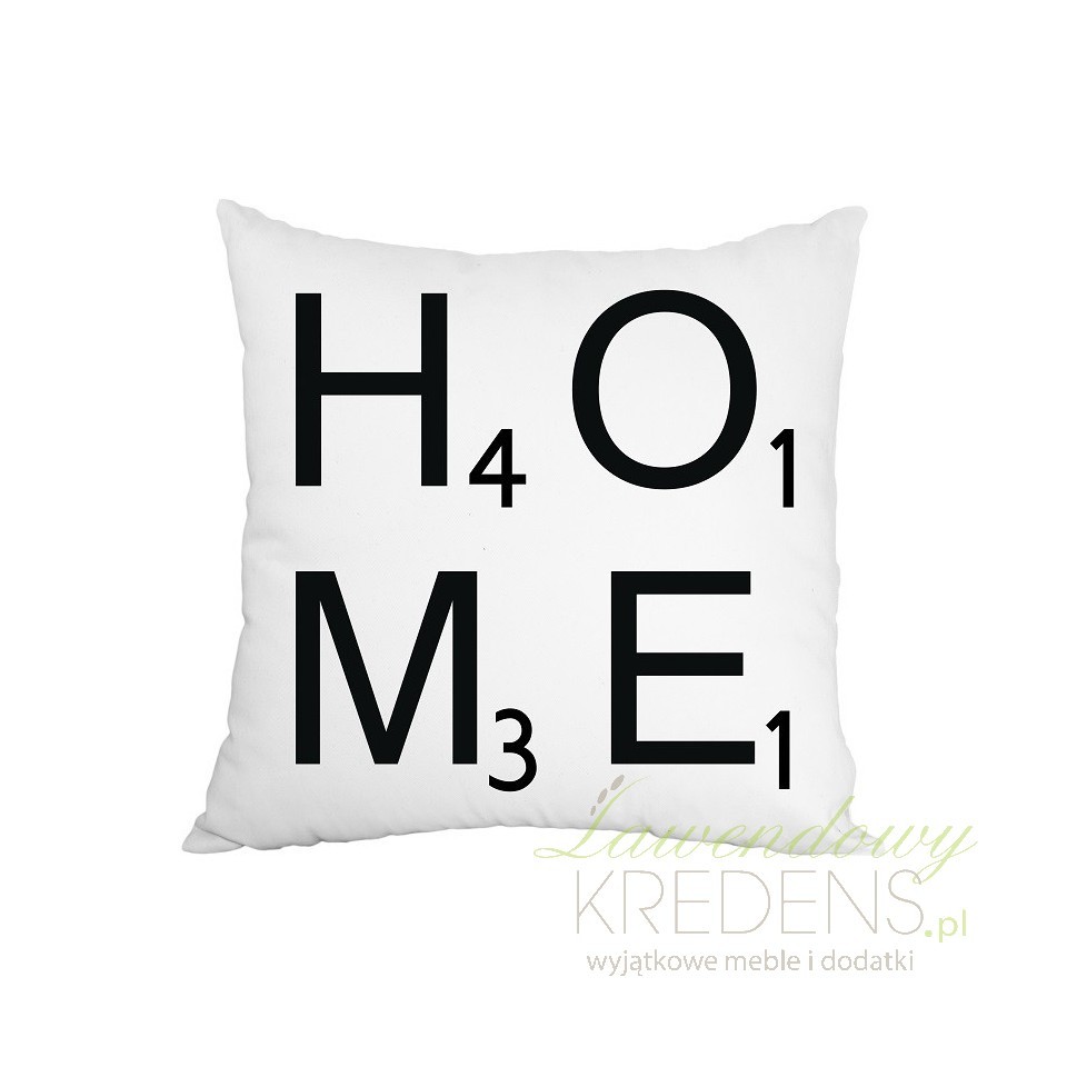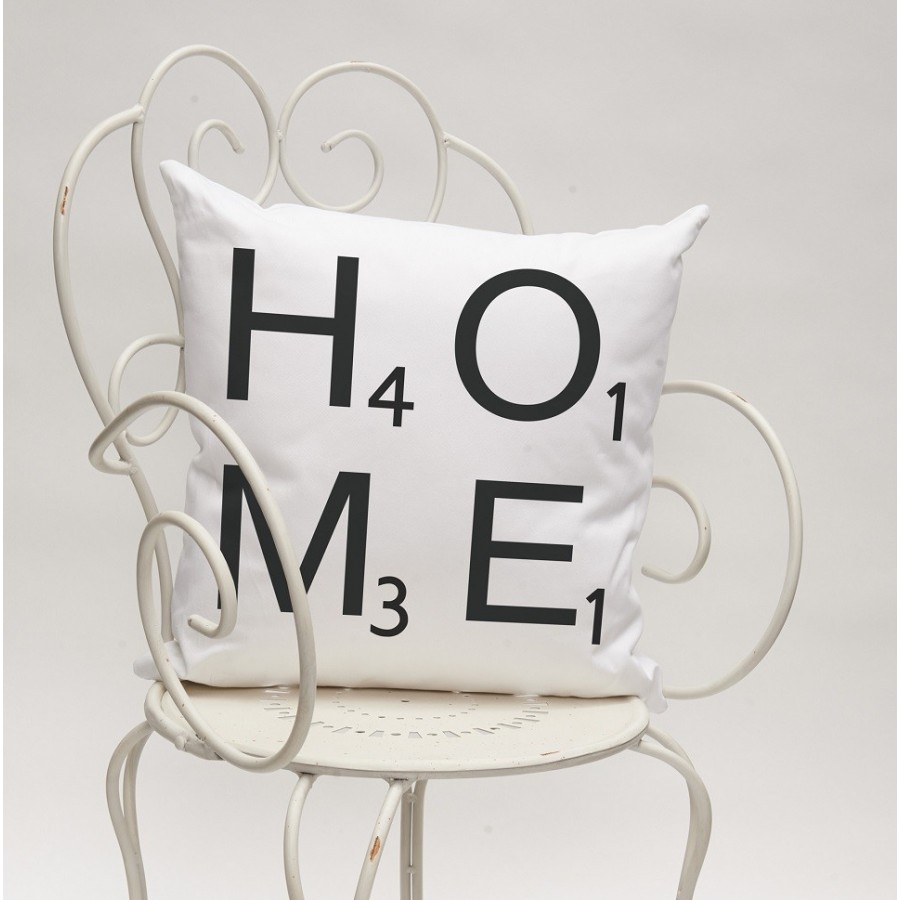 Poduszki ozdobne HOME to ciekawe poduszki French Home z pomysłowym wzorem. Grafika znajdująca się na białych, wykonanych ze stuprocentowej bawełny poszewkach to napis HOME, którego litery wyglądają jak literki gry planszowej scrabble. Poszewki poduszek są rozpinane, dzięki czemu można je zdjąć i uprać w pralce.
