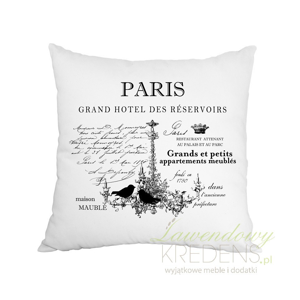 Poduszki PARIS to poduszki ozdobne w stylu francuskim z napisami oraz z motywem żyrandola.