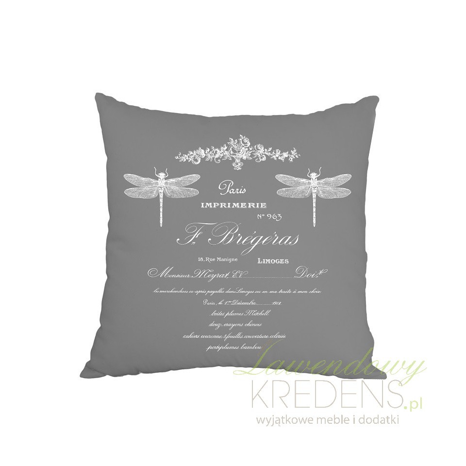 Szare poduszki French Home z francuskimi napisami i ważkami to przepiękne, ozdobne poduszki w stylu francuskim. Ozdobne poszewki poduszek wykonane są ze stuprocentowej bawełny i rozpinane na zamek, dzięki czemu można je wygodnie uprać w pralce bez konieczności prania całej poduszki.