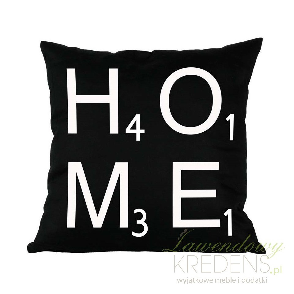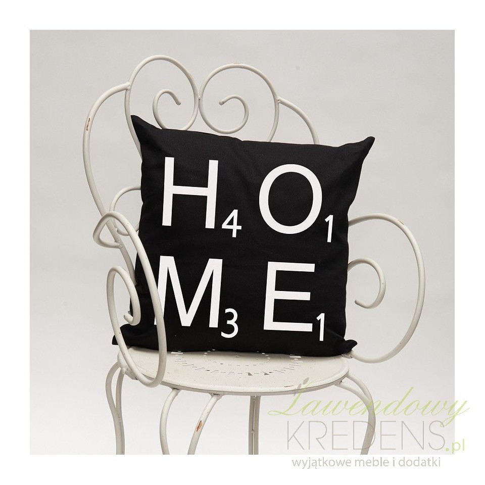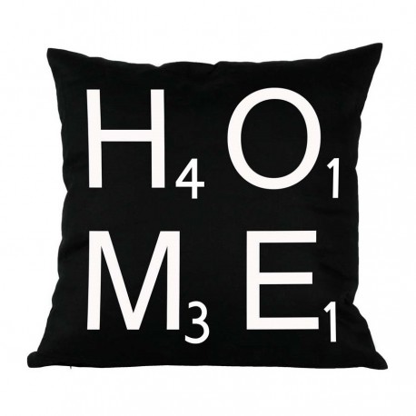 Wdzięczne czarne poduszki z bawełnianą ściąganą poszewką (suwak znajduje się w dolnej części poduszki). Wzór wykonany metoda nadruku przedstawia napis HOME utworzony z liter lubianej gry słownej. Wypełnienie poduszki stanowi wkład z kulek silikonowych. Posiadają one właściwości hipoalergiczne i są niezwykle trwałe i elastyczne.