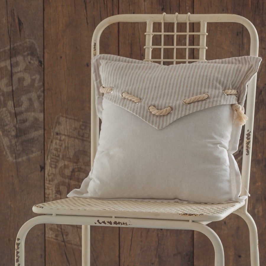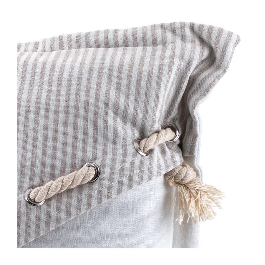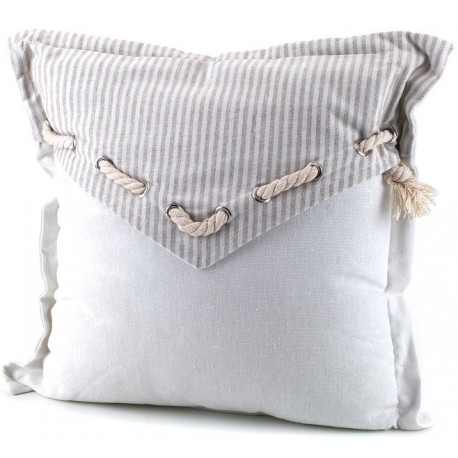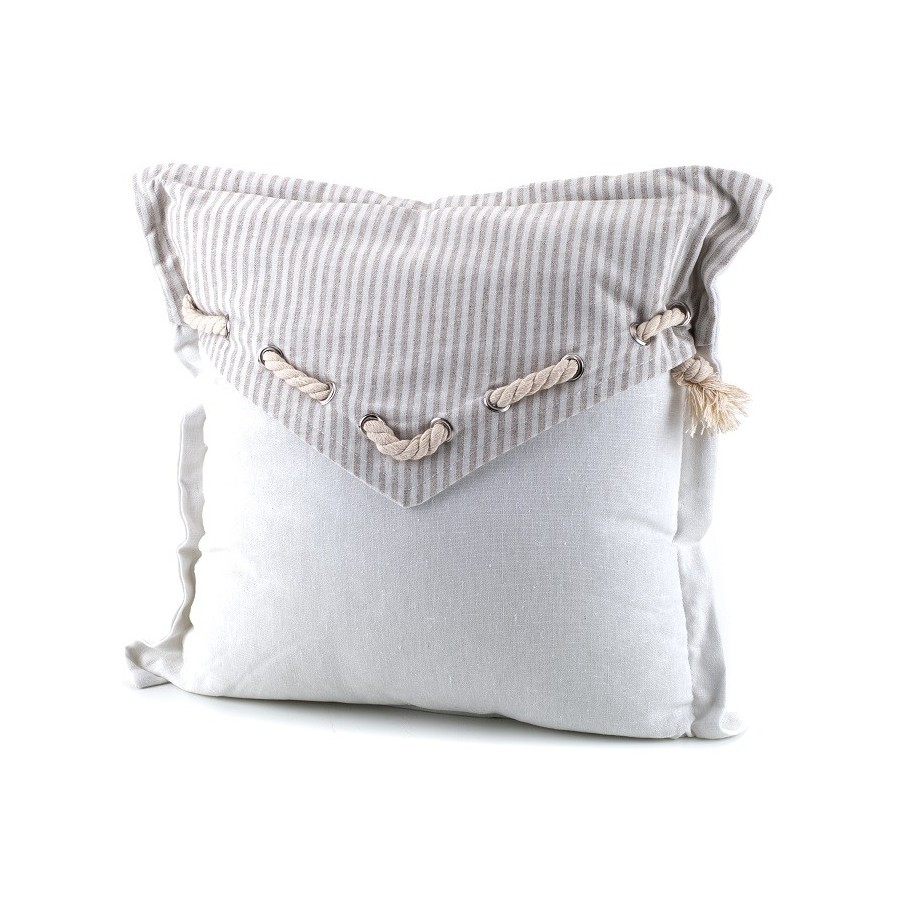 Poduszki ozdobne Aluro Filatti to uformowane w kształt kwadratu miękkie poduszki, które składają się z dwóch części. Dolnej części nadano kolor biały, górna zaś to dodatkowa, biało-beżowa, pasiasta warstwa materiału, wyposażona w przewleczony przezeń sznurek. Poduszka jest nie tylko ładna, ale też bardzo wygodna – idealna do salonu czy sypialni.