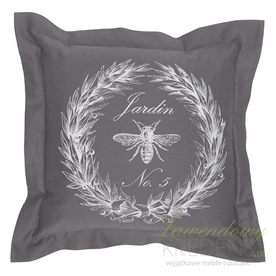 Przepiękne poduszki dekoracyjne w kolorze dojrzałych szarości, zostały ozdobione wizerunkiem pszczoły.