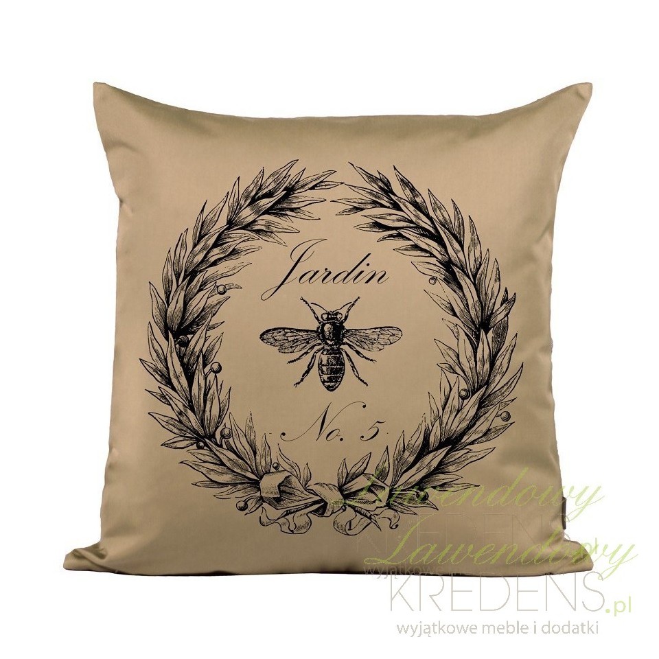 Dekoracyjne poduszki French Home, które z pewnością odmienią Twoje wnętrze i wprowadzą światowy, francuski klimat. Beżowa poszewka posiada z boku zamek, dzięki czemu poszewkę można łatwo ściągnąć i wyprać w pralce. Niezwykle wygodny wkład poduszki francuskiej pozwala cieszyć się kształtem poduszki, zapewniając odporność na odkształcenia mechaniczne. Piękna grafika na frontowej stronie przedstawiająca wieniec laurowy i dużego owada wprowadza dodaje wdzięku i lekkości!