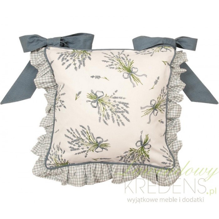 Poszewki z lawendą oddają Prowansalski klimat w twoim pokoju czy kuchni. Poduszka na krzesło wykonana jest z przewiewnej lawendy w kolorze niebieskim i ma kwadratowy kształt. Poszewka z lawendą ma uroczo gniecioną znajdującą się naokoło falbankę w kratę. Jest bardzo dekoracyjna, szczególnie z ciemnoniebieskimi, ślicznymi kokardkami u góry.