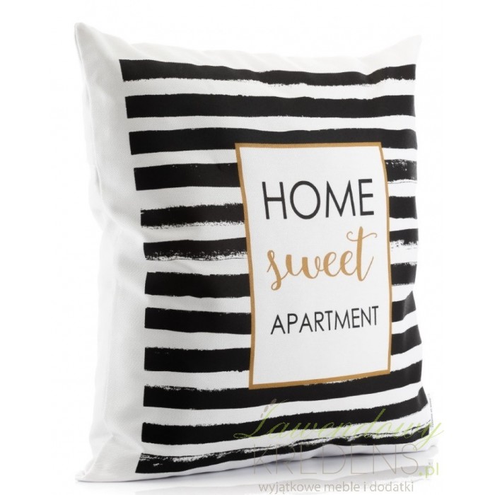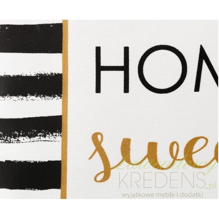 Kwadratowa poduszka ozdobna marki Aluro to bardzo oryginalny dodatek do nowoczensych wnętrz i nie tylko. Z przodu poduszka została ozdobiona czarnymi paskami i angielskimi napisami w złotej ramce. Na odwrocie poszewka jest biała i posiada wygodny suwaczek, dzięki czemu łatwo wyjmiesz z niej poduszkę. Poduszki ozdobne są doskonałą ozdobą stylowego wnętrza.