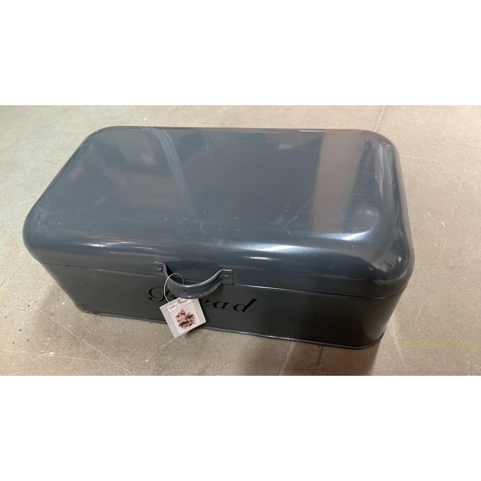 Niestandardowy pojemnik na pieczywo w kolorze intensywnej szarości z czarnym napisem Bread. Zapraszamy!