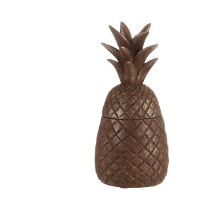 Ten brązowy ananas to oryginalny pojemnik ozdobny. Powierzchnia pojemnika jest malowana na kolor brązowy i ma delikatny połysk. Pojemnik ananas możesz wykorzystać jako ozdobę półki w salonie lub komody w sypialni. A może wyjątkowe dodatki do domu to sposób na obdarowanie przyjaciela?