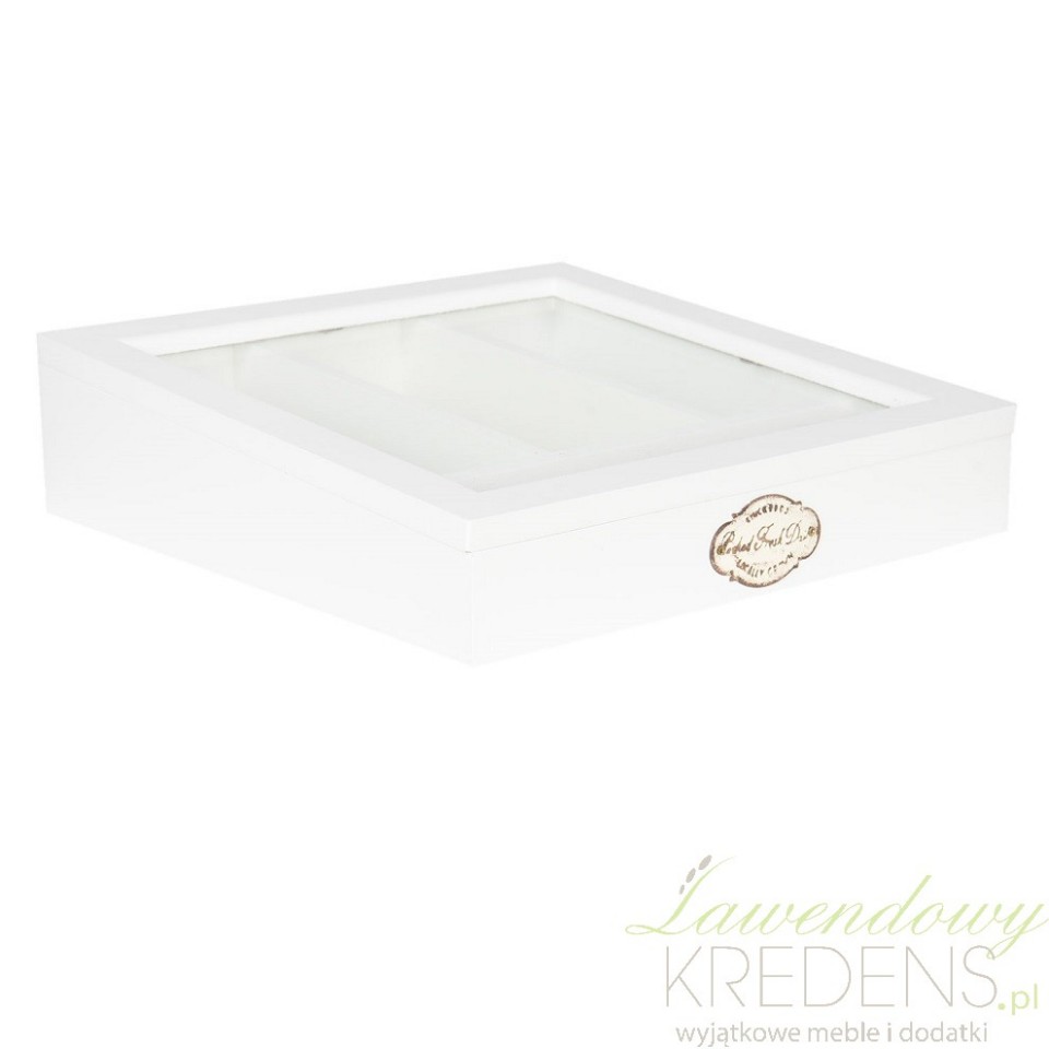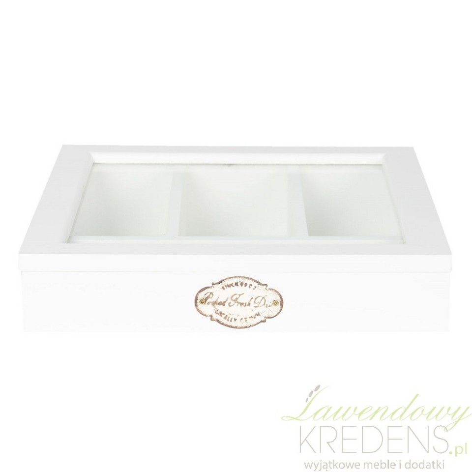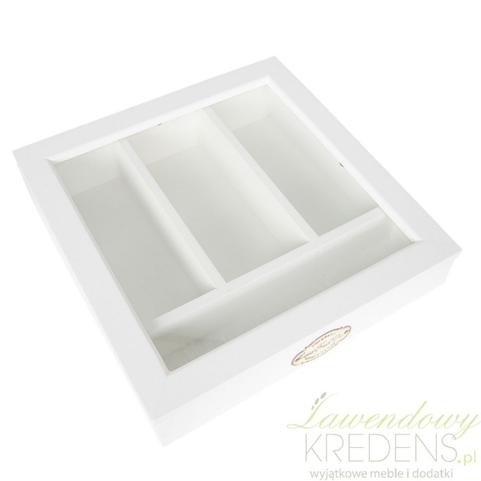 Kochasz praktyczne dodatki w stylu prowansalskim? Drewniany pojemnik na sztućce z szklanym wieczkiem z kolekcji Clayre&Eef to magiczne pudełko, które zwraca na siebie uwagę grawerowaną dekoracją z napisami znajdującą się na froncie. Taki piękny detal w kuchni będzie podkreślał Twoje zamiłowanie do stylowych i funkcjonalnych dodatków. Wnętrze pojemnika to aż cztery, różnej wielkości przegródki.