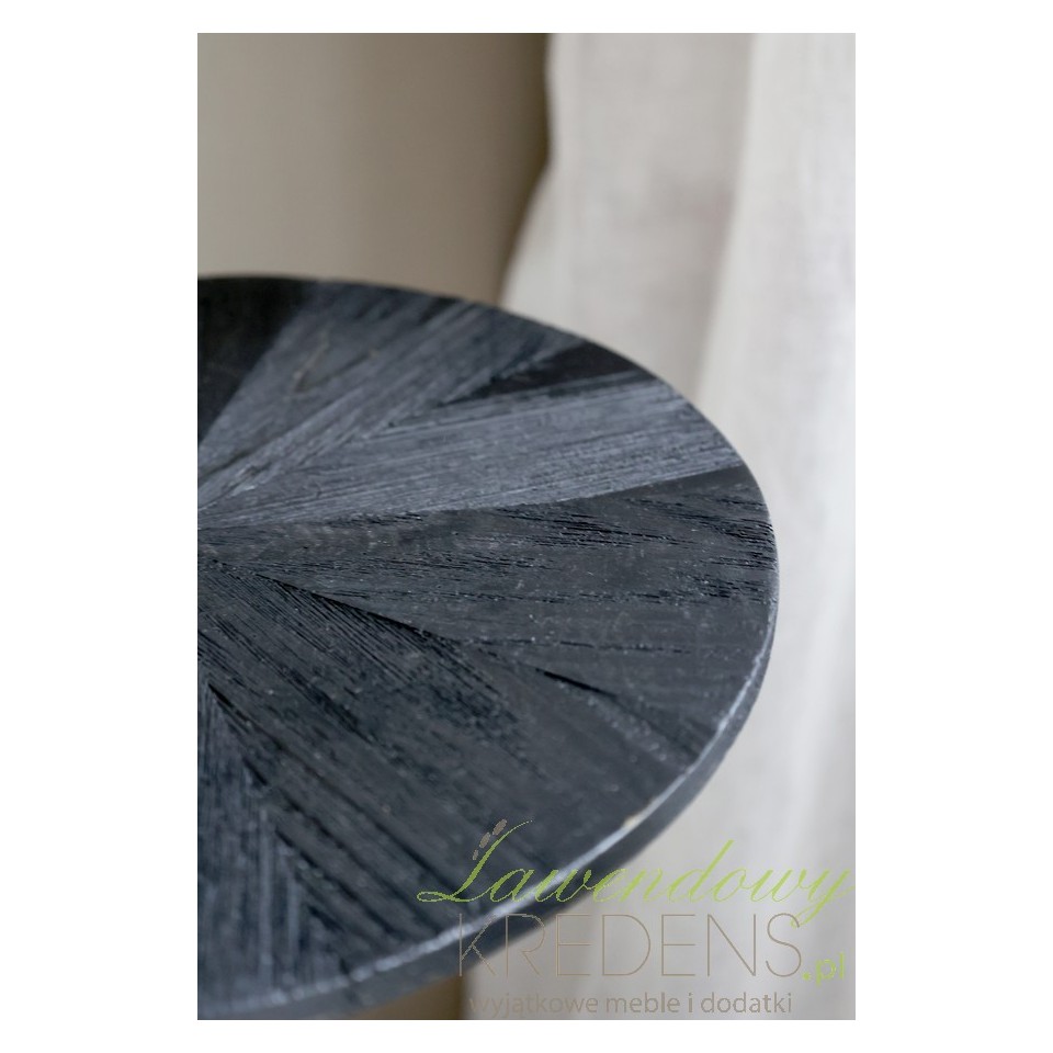Blat wykonany z litego drewna jodłowego, wykończony na głęboki, czarny kolor z widoczną strukturą słojów, nadaje półce elegancji i surowej naturalności. To właśnie dzięki temu wykończeniu mebel prezentuje się oryginalnie i ponadczasowo, zachowując lekkość oraz wyjątkowy styl. Metalowy wspornik w formie wysięgnika zapewnia stabilność i udźwig do 3 kg, co pozwala z powodzeniem postawić na niej książkę, kubek, lampkę nocną czy roślinę doniczkową.