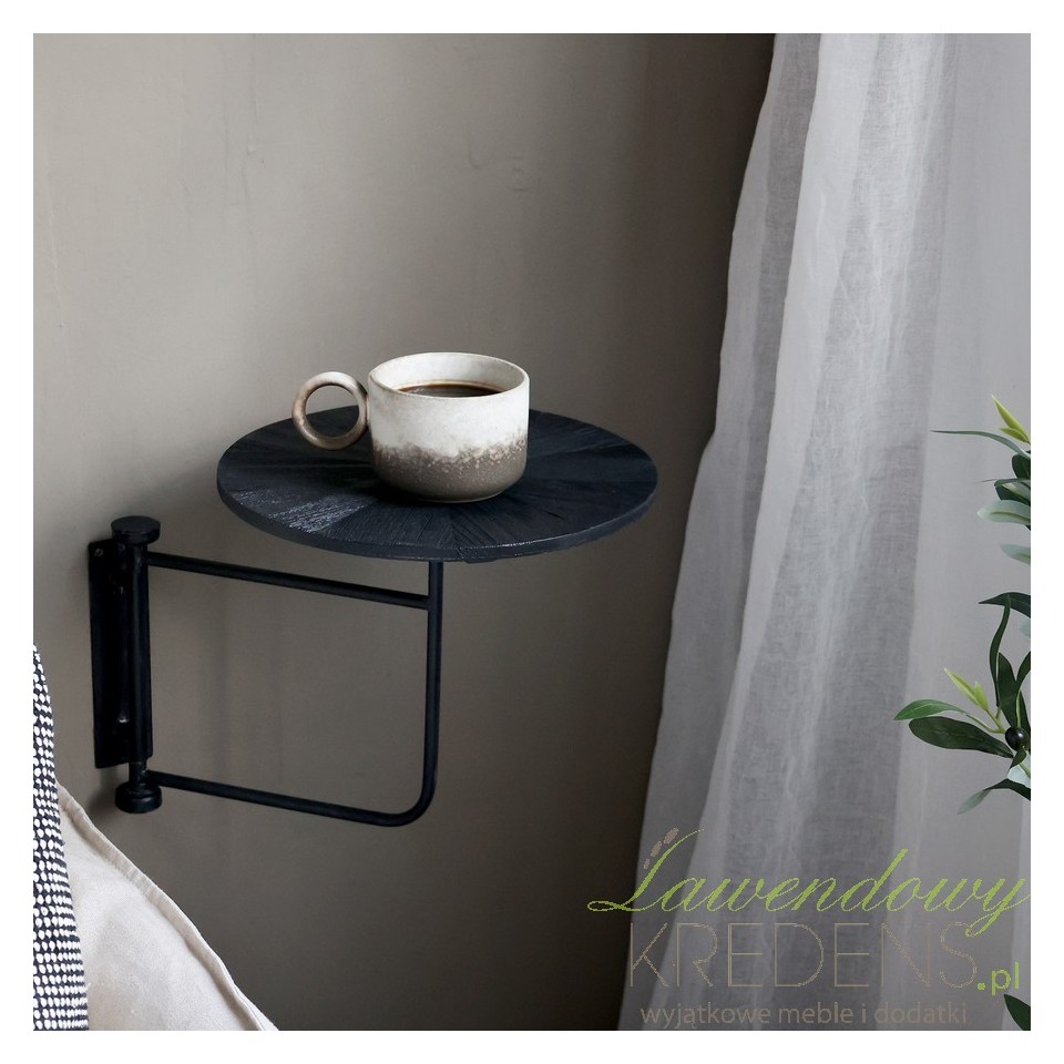 Półka ścienna Chic Antique na wysięgniku to propozycja dla tych, którzy cenią sobie połączenie funkcjonalności i wysmakowanego, minimalistycznego designu. Industrialny charakter mebla podkreślony czarnym metalowym ramieniem i drewnianym, okrągłym blatem, doskonale wpisuje się w nowoczesne oraz skandynawskie wnętrza.