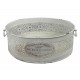Postarzany, metalowy pojemnik firmy Chic Antique z ozdobną, przezroczystą dekoracją w formie koronki na środku!