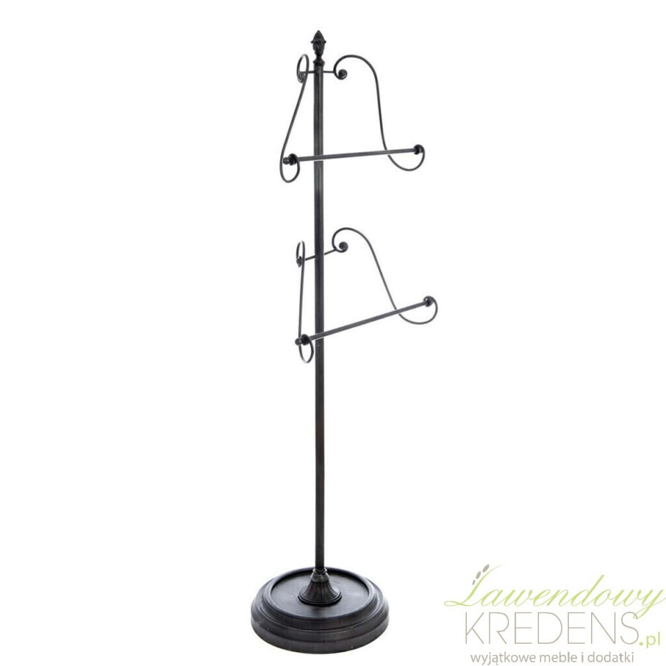 Wyposażony w dwa praktyczne drążki, zapewnia miejsce na ręczniki różnej wielkości, co sprawia, że jest nie tylko dekoracyjnym, ale również niezwykle użytecznym dodatkiem. Z wysokością 127 cm wieszak jest proporcjonalny i doskonale wpasuje się zarówno do mniejszych, jak i bardziej przestronnych łazienek. Ten stojący wieszak stanowi idealne rozwiązanie dla osób, które cenią sobie stylowe detale w aranżacji wnętrz.