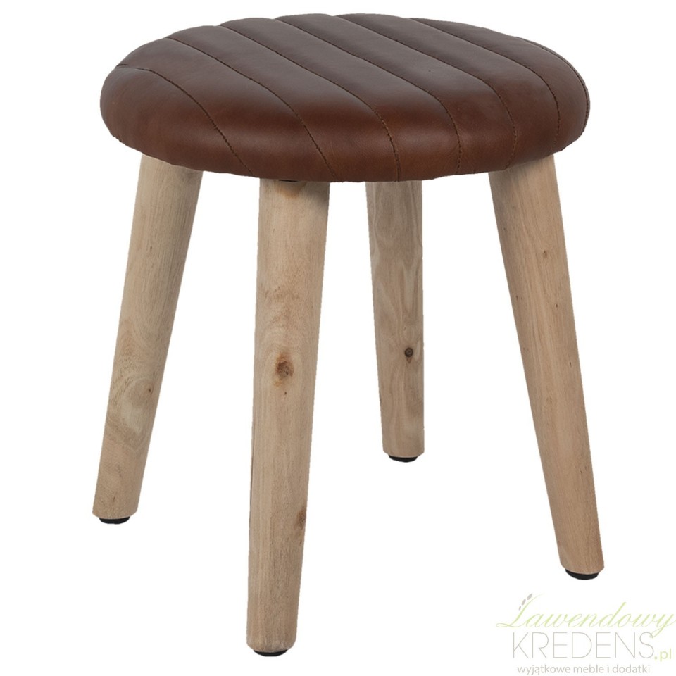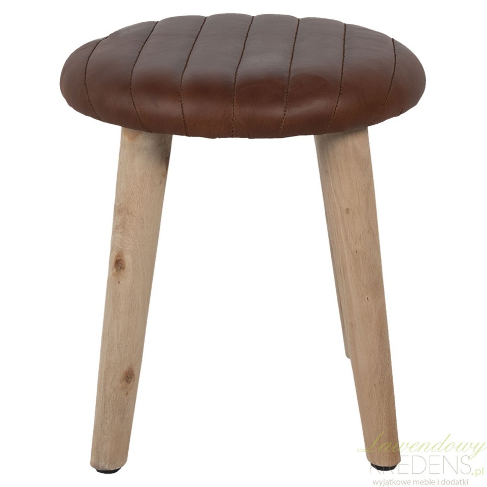 Przedstawiamy wygodny stołek ze skórzanym siedziskiem do kuchni i nie tylko. To projekt marki Clayre & Eef, która potrafi zadbać o najmniejszy szczegół! To ekskluzywny i nowoczesny mebel, który sprawdzi się jako siedzisko przy stole lub podnóżek ze skórzanym siedziskiem w domowym biurze. Podstawa stołka wykonana jest z drewna, a siedzisko tapicerowane skórą w kolorze brązowym. Zobacz również inne stołki ze skórzanym siedziskiem i zamów komplet mebli dopasowanych do Twojego stylu i wnętrza.
