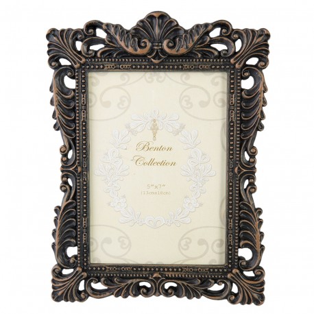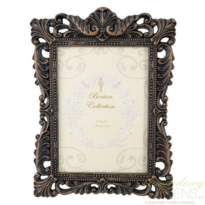 Barokowa ramka na zdjęcie o rozmiarze 10 cm na 15 cm. Ramka idealna do ustawienia na komodzie lub stoliku nocnym.