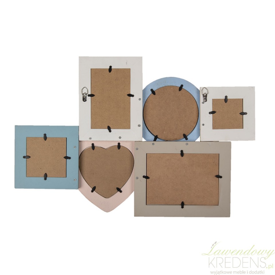 Ramki na zdjęcia w stylu prowansalskim kolorowe to zestaw sześciu, połączonych ze sobą ramek w pastelowych odcieniach.