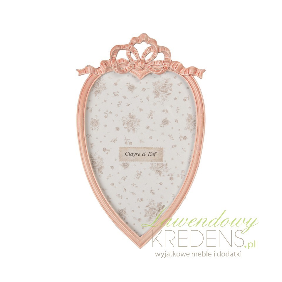Romantyczna ramka na zdjęcie w kształcie serca Clayre & Eef w różowym kolorze to wyjątkowa dekoracja, która pięknie podkreśli ulubione wspomnienia. Wykonana z żywicy polimerowej, ozdobiona subtelną kokardą, doskonale sprawdzi się jako prezent i dodatek do wnętrz w stylu prowansalskim czy shabby chic.