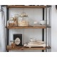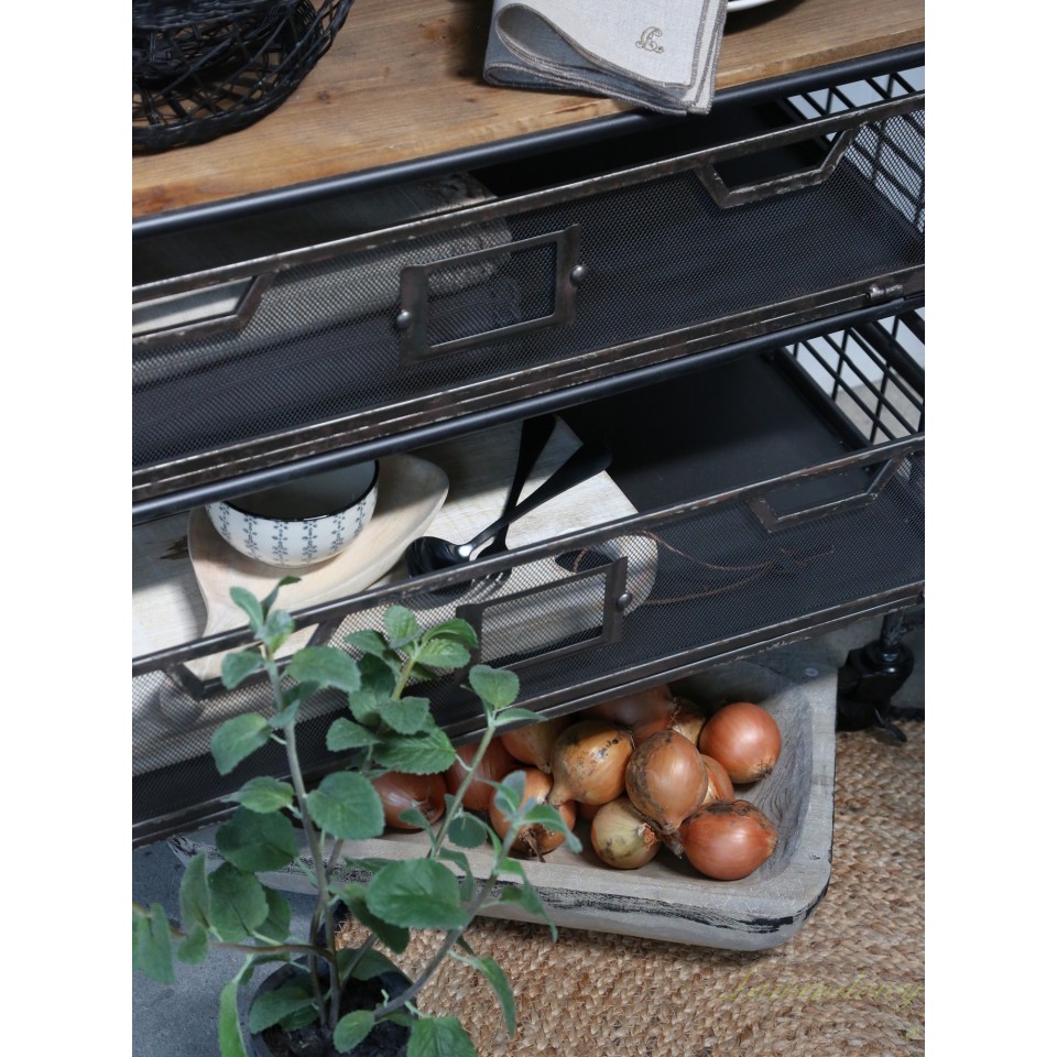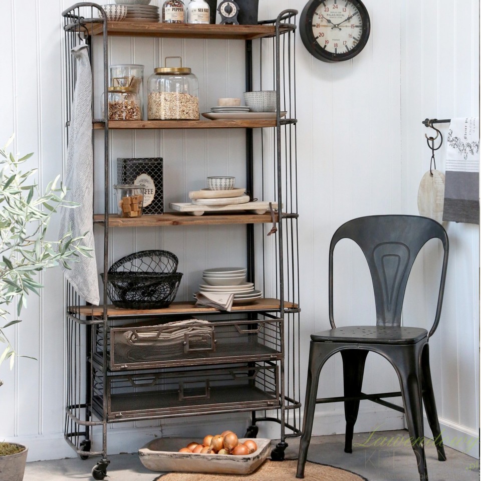Regał na kółkach Chic Antique industrialny jest stabilny i bezpieczny. To doskonały pomysł na wystrój wielu wnętrz – jego współczesny styl i surowe wykończenie nadadzą Twojemu salonowi, kuchni lub jadalni przemysłowy klimat. Estetyczny, ładny regał z półkami i dwoma szufladkami znajdzie swoje miejsce zarówno we wnętrzach miejskich, współczesnych, jak i tych bardziej rustykalnych. Przechowuj swoje rzeczy na kilku piętrach, aby je uporządkować i przy okazji wyeksponować.